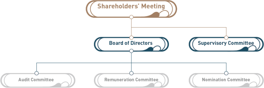 A two-tier structure is adopted as the overall structure for corporate governance: the Board and the Supervisory Committee are established under the shareholders' meeting; the Audit Committee, Remuneration Committee and Nomination Committee are established under the Board. The Board is authorised by the articles of association of the Company (the "Articles of Association") to make major operational decisions of the Company and to oversee the daily management and operations of the senior management. The Supervisory Committee is mainly responsible for the supervision of the performance of duties of the Board and the senior management. Each of the Board and the Supervisory Committee is independently accountable to the shareholders' meeting.